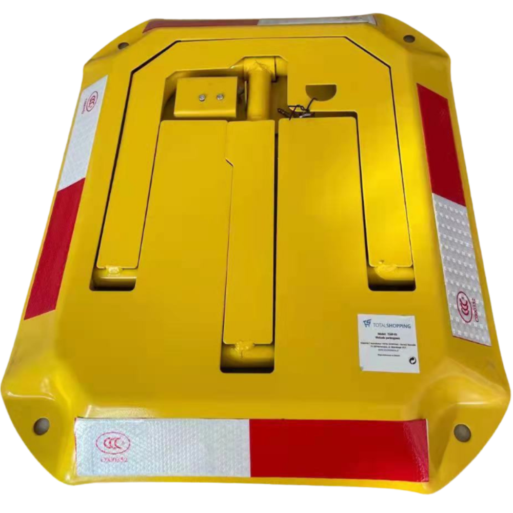 TSBP-01 to składana blokada parkingowa z zamkiem na klucz. Ma automatyczny zatrzask – do otwarcia wystarczy ją rozłożyć (bez użycia klucza); do zamknięcia używasz klucza.