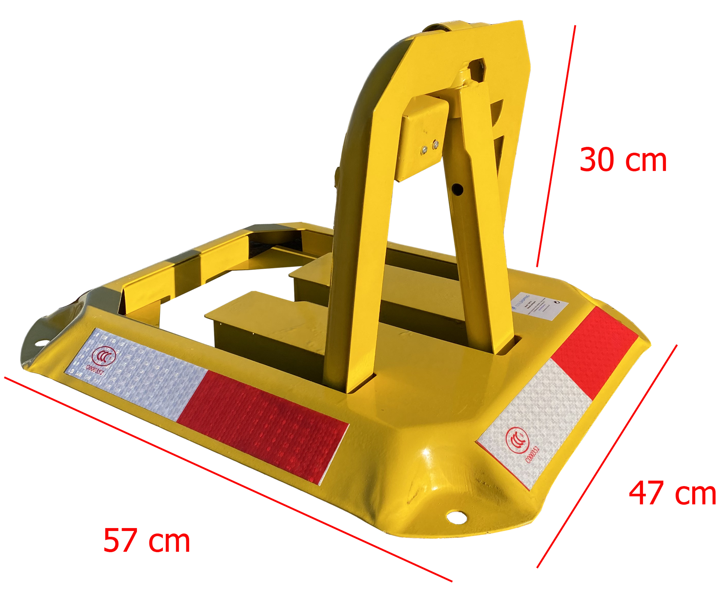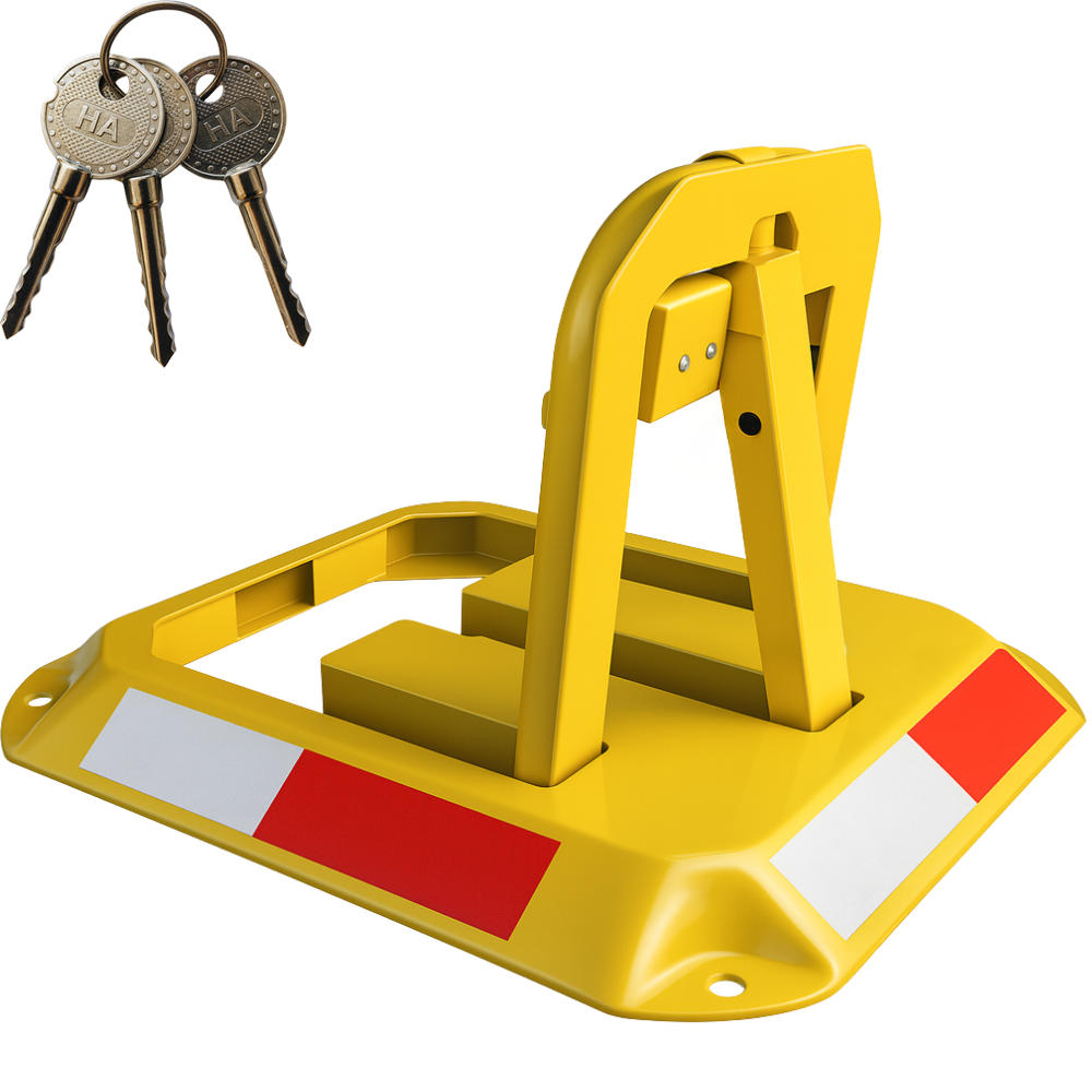 Ta składana blokada parkingowa to solidne i praktyczne rozwiązanie, które skutecznie chroni Twoje miejsce postojowe przed nieuprawnionym parkowaniem. Wykonana z wytrzymałej stali malowanej proszkowo, zyskała wysoką odporność na warunki atmosferyczne. Dzięki wysokiej widoczności, zamkowi na klucz i automatycznemu zatrzaskowi zapewnia bezpieczeństwo i komfort użytkowania. Niska wysokość po złożeniu (4,5 cm) sprawia, że jest bezpieczna dla każdego samochodu.