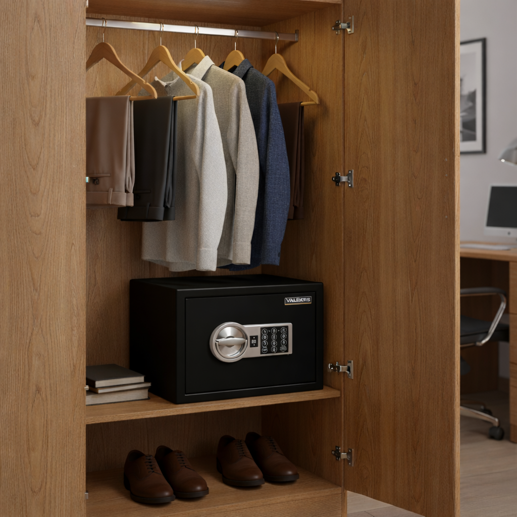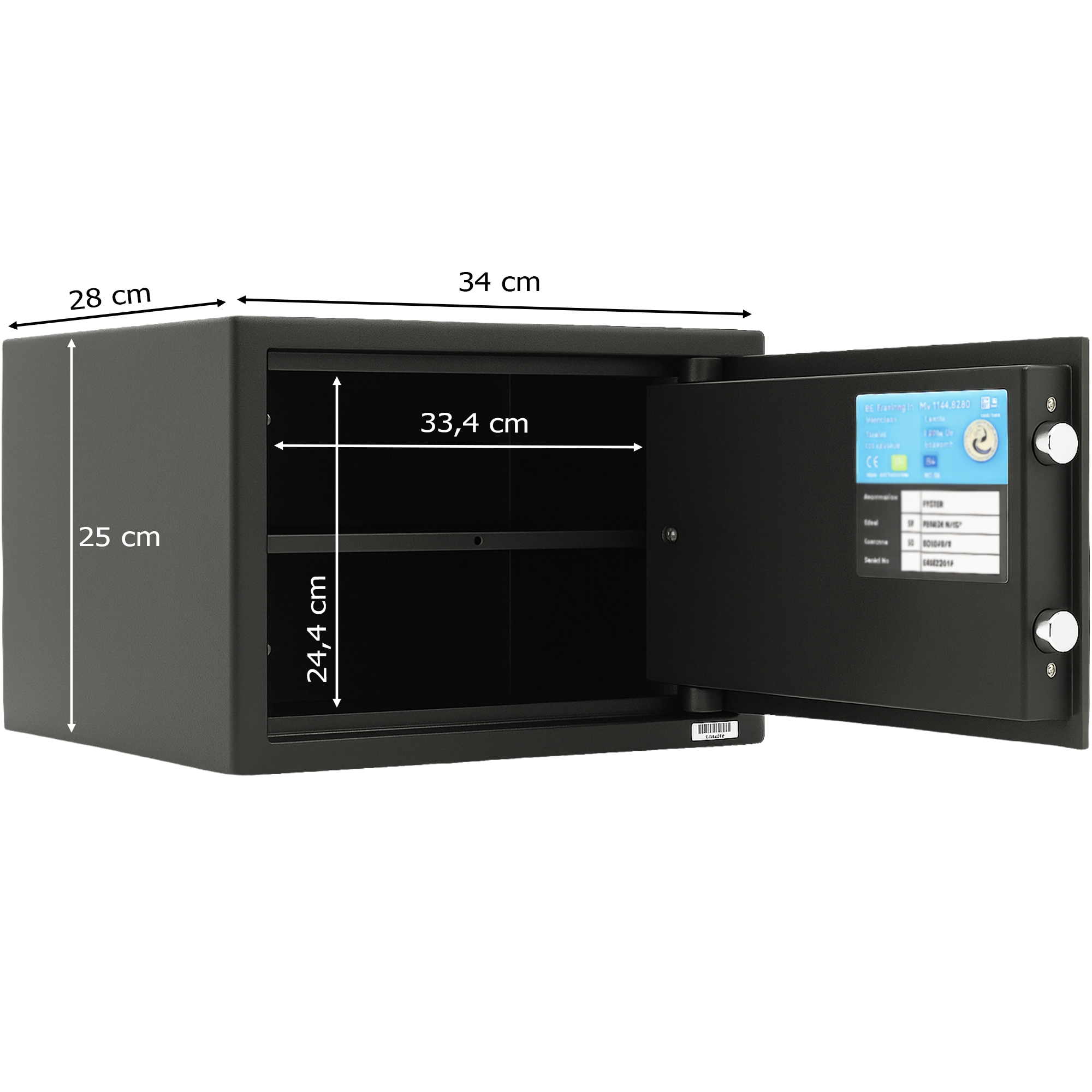 Sejf antywłamaniowy S1 VALBERG Arsenał 25 czarny – zamek elektroniczny (PN-EN 14450, 250×340×280 mm)