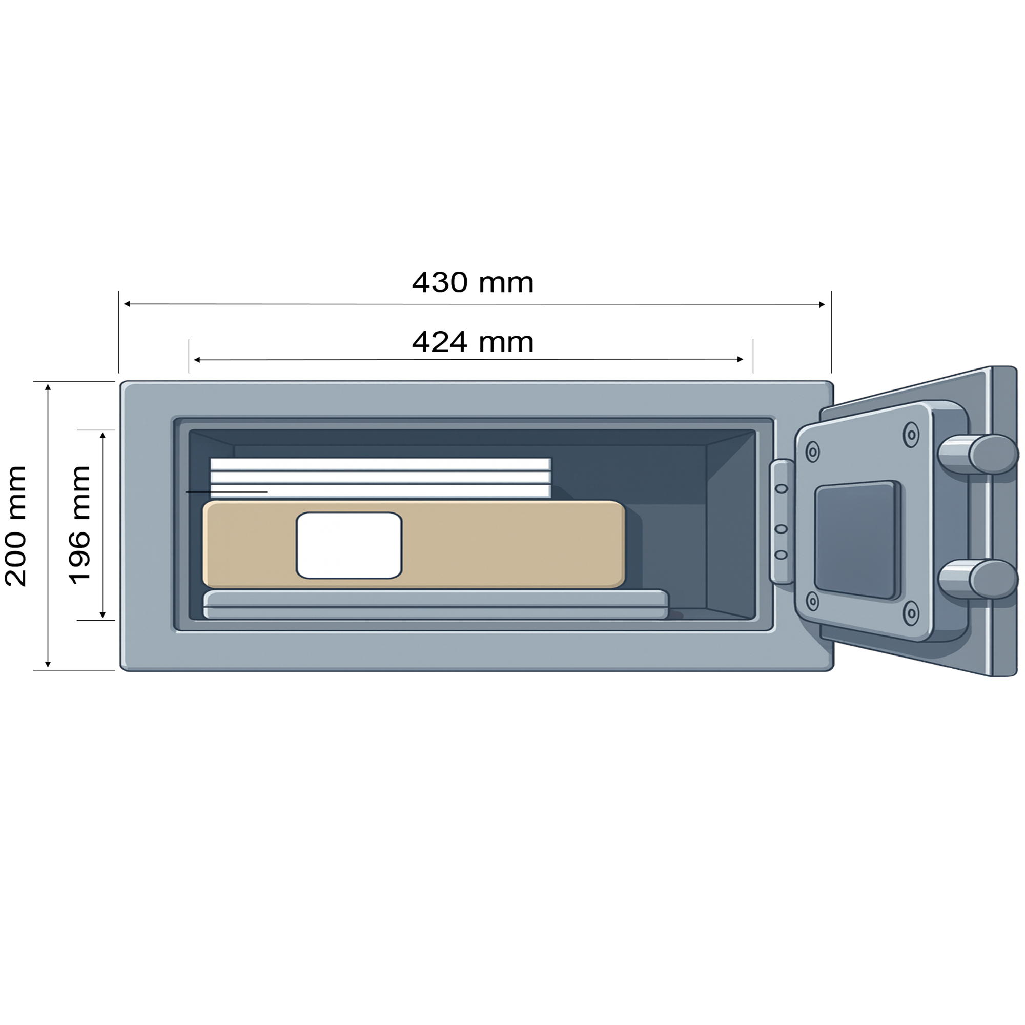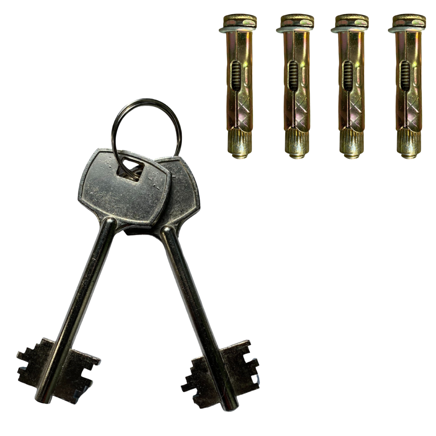 - W zestawie: sejf, 2 klucze, 4 × kotwy montażowe