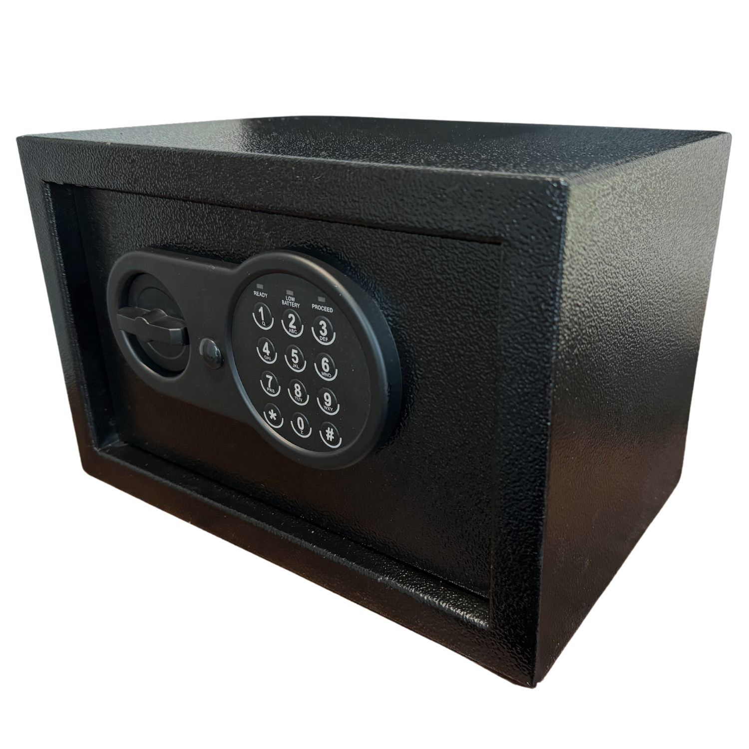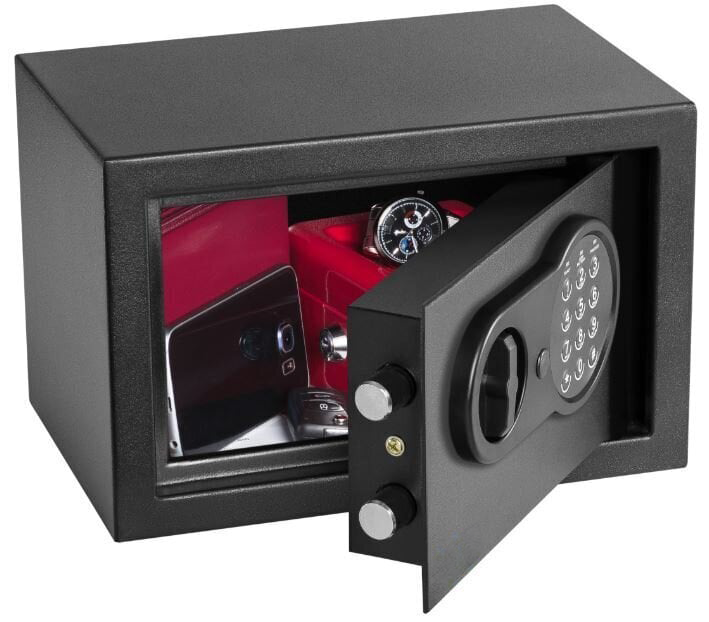 W zestawie: sejf TSF-16, 2 klucze awaryjne, 4 kotwy montażowe, instrukcja obsługi. Model świetnie sprawdzi się w domu, biurze, hotelu i pensjonacie. Produkt oznaczony CE i GPSR.