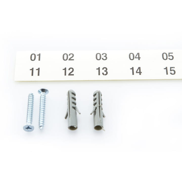 W zestawie: szafka, 20 różnokolorowych breloczków z etykietami, naklejki z numerkami, kołki mocujące, instrukcja obsługi zamka
